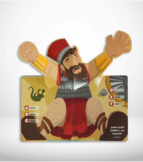 ¡Cuántos héroes tiene la Biblia! ¿Conoces muchos? ¿Conoces uno cuyo nombre empiece con la letra S? ¿Y con la J? ¿Y con la F? ¡Veamos! Aprende las letras del abecedario, responde adivinanzas y sorprenderte con las grandes imágenes que saltarán del libro y fijarán en tu mente los nombres de personajes de la Biblia.