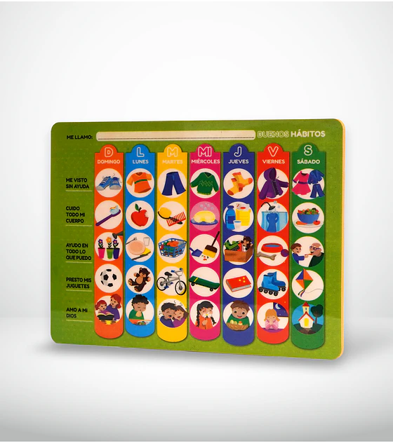 ideal empezar el juego el domingo para que el niño aprenda los días de la semana y vaya creando buenos hábitos durante la semana